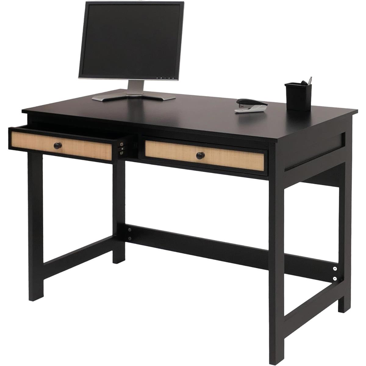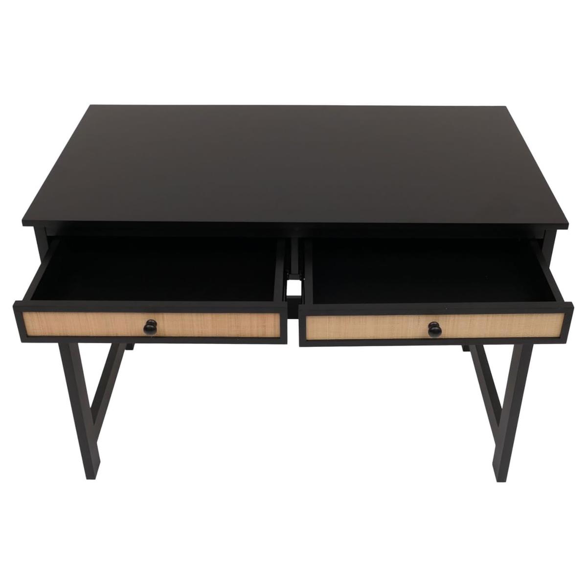 Un élément distinctif est constitué par les tiroirs avec panneaux frontaux en raphia, qui confèrent au bureau un aspect naturel et chaleureux.