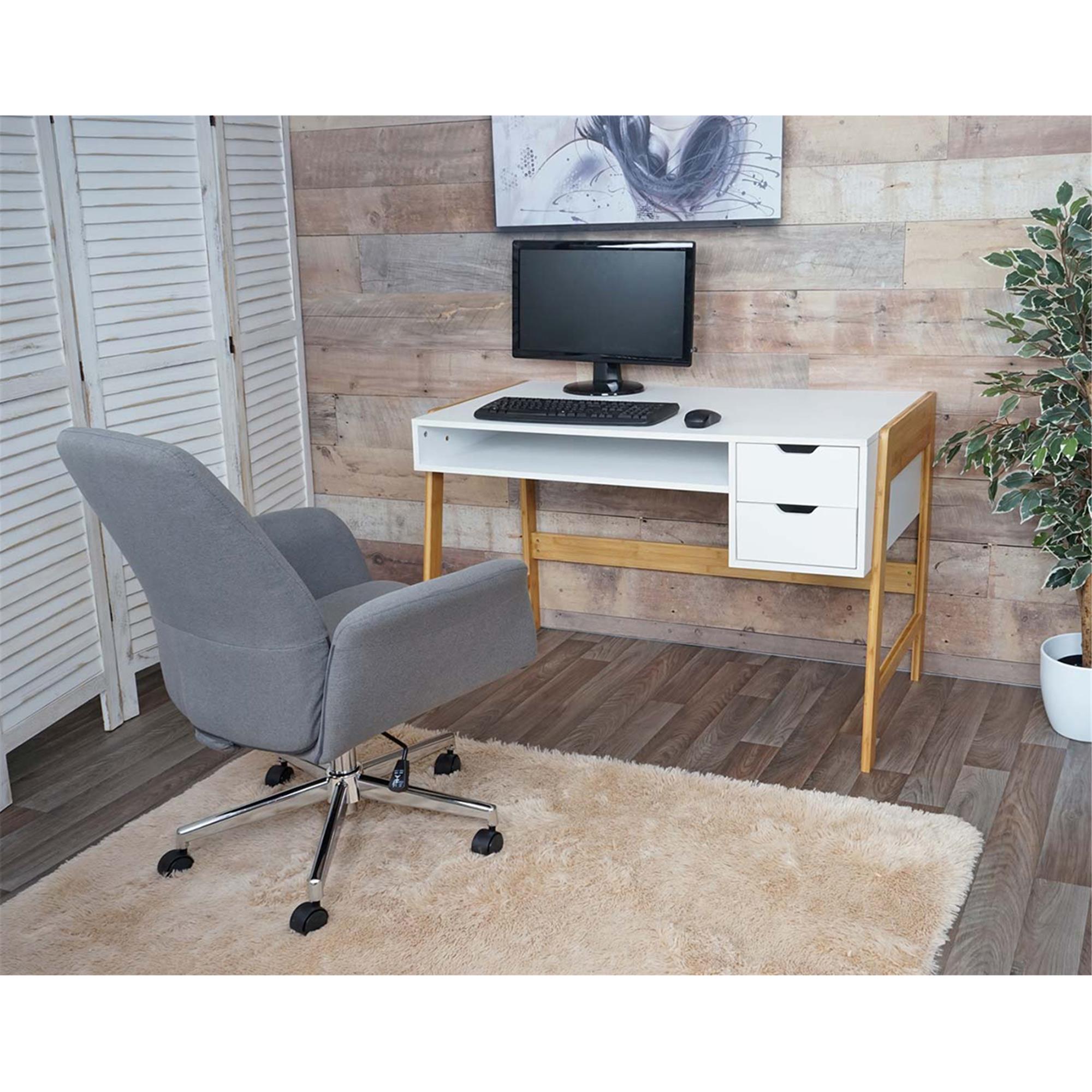 C'est un bureau parfait pour les petits espaces, idéal pour un usage quotidien. Il est équipé de deux tiroirs pratiques pour le rangement. Ainsi, vous pourrez garder votre surface de travail en ordre. Ce bureau informatqiue dispose également d'un grand espace de rangement ouvert sous le plateau principal, où il vous sera tout à fait possible de ranger tous les documents et objets dont vous avez besoin à portée de main.