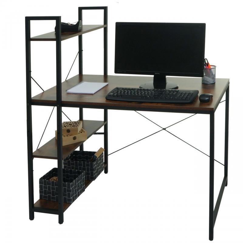 Bureau Informatique NORMAN 100x60x72 cm, avec Étagère, en Bois et Métal, couleur Noyer