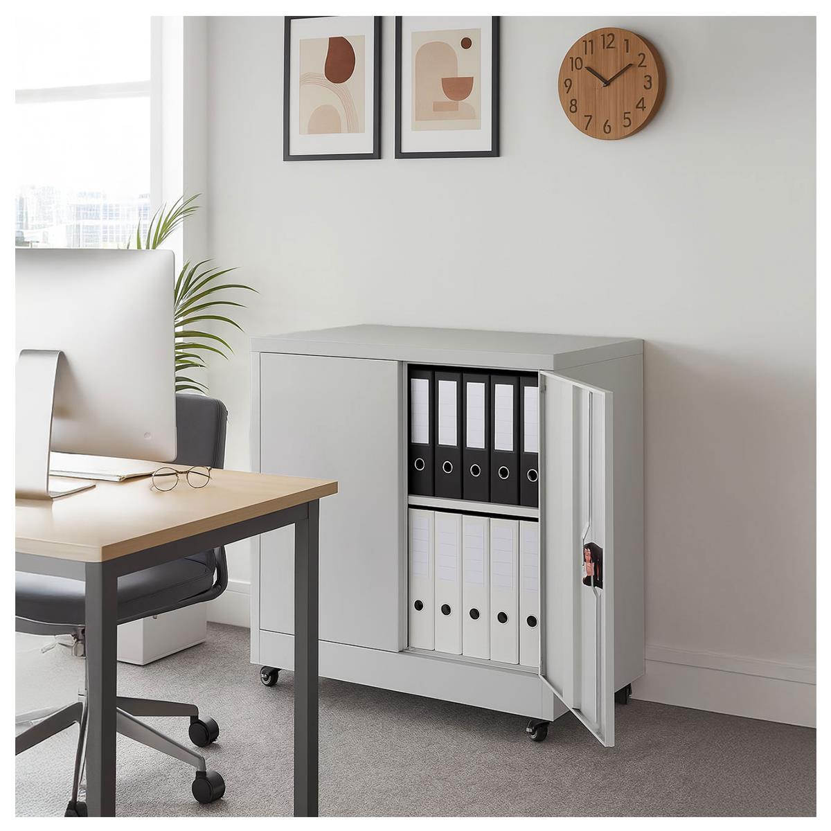 Caisson Mobile BRENTON, 98x40x80 cm, avec Roulettes, en Acier, couleur Gris Clair