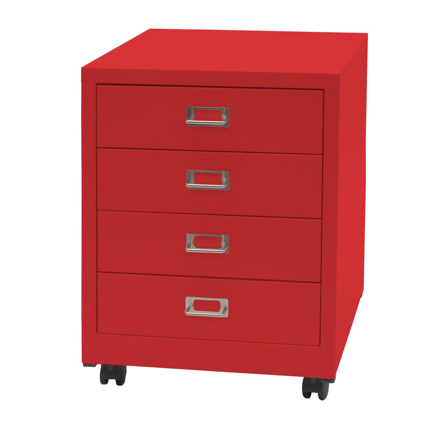Caisson Mobile DONY, 4 Tiroirs, 40x41x55 cm, en Acier, Rouge