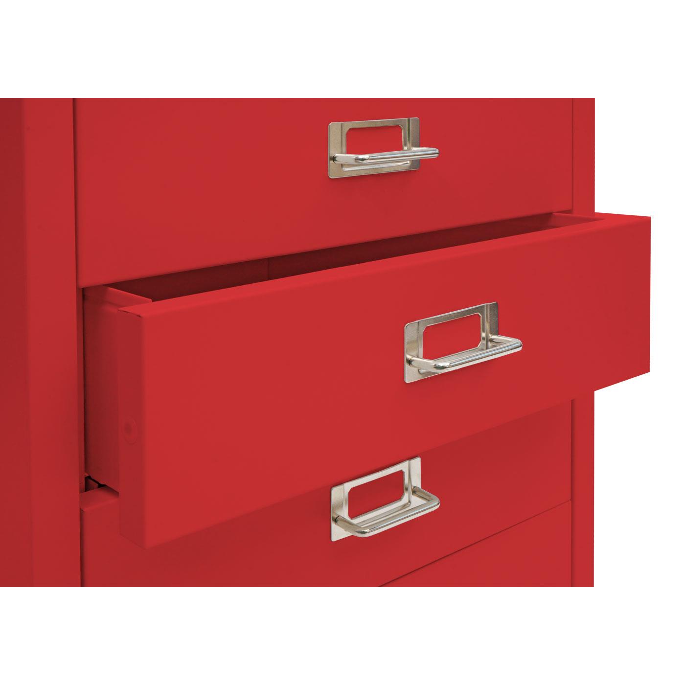 Les tiroirs sont munis d’un porte-étiquette d’identifier d’un coup d’œil son contenu. Sa construction robuste garantit une stabilité et une conservation optimales de vos dossiers. Le classeur est fabriqué en tôle d'acier laminée à froid de 0,6 mm, une épaisseur supérieure à celle généralement utilisée pour ce type de mobilier. Il est équipé de quatre roulettes, dont deux peuvent être bloquées pour garantir une position stable. Cela permet de le déplacer rapidement et facilement vers un autre emplacement si nécessaire.