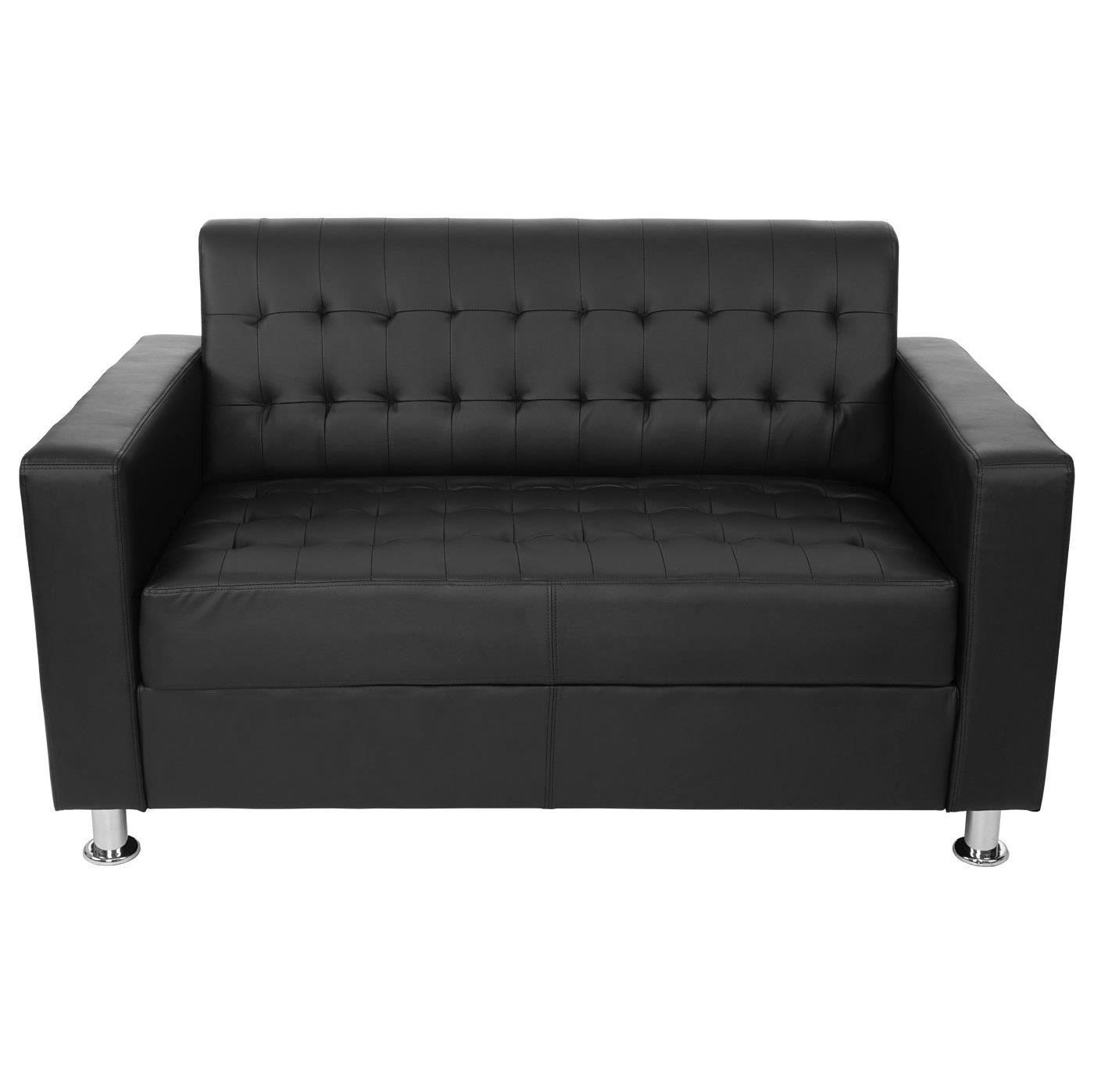 Canapé 2 places CUMBIA, Confortable et Élégant, Pieds Chromés, en Cuir, Noir