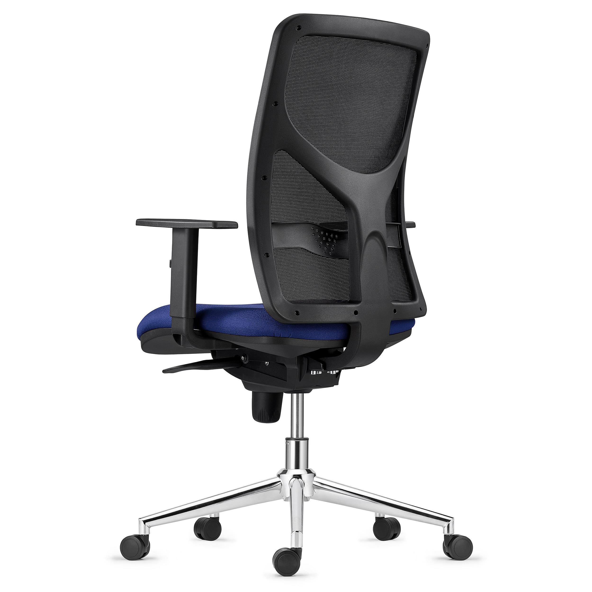 Chaise de bureau MILO, Piétement métallique, Accoudoirs Ajustables, Support Lombaire, en Tissu, Bleu Foncé