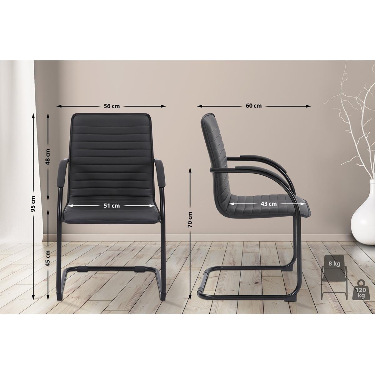 Chaise de Conférence GREGORY, Structure Métallique Noire, Design élégant et moderne, Cuir, Noir
