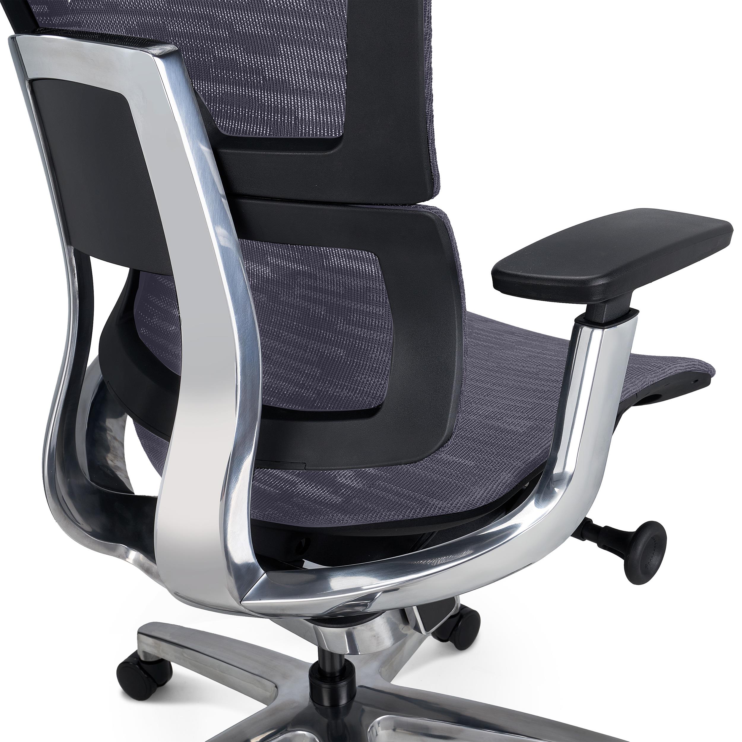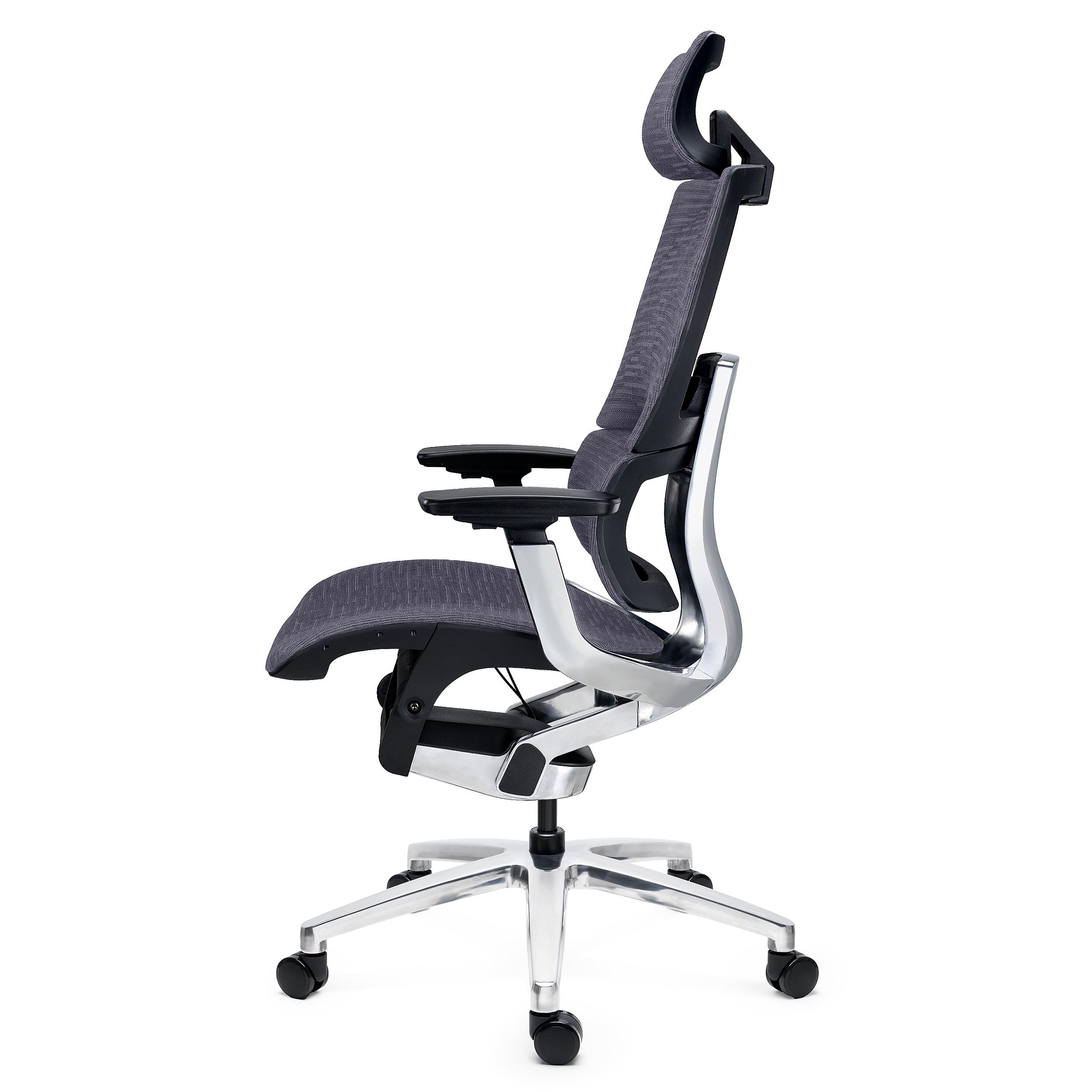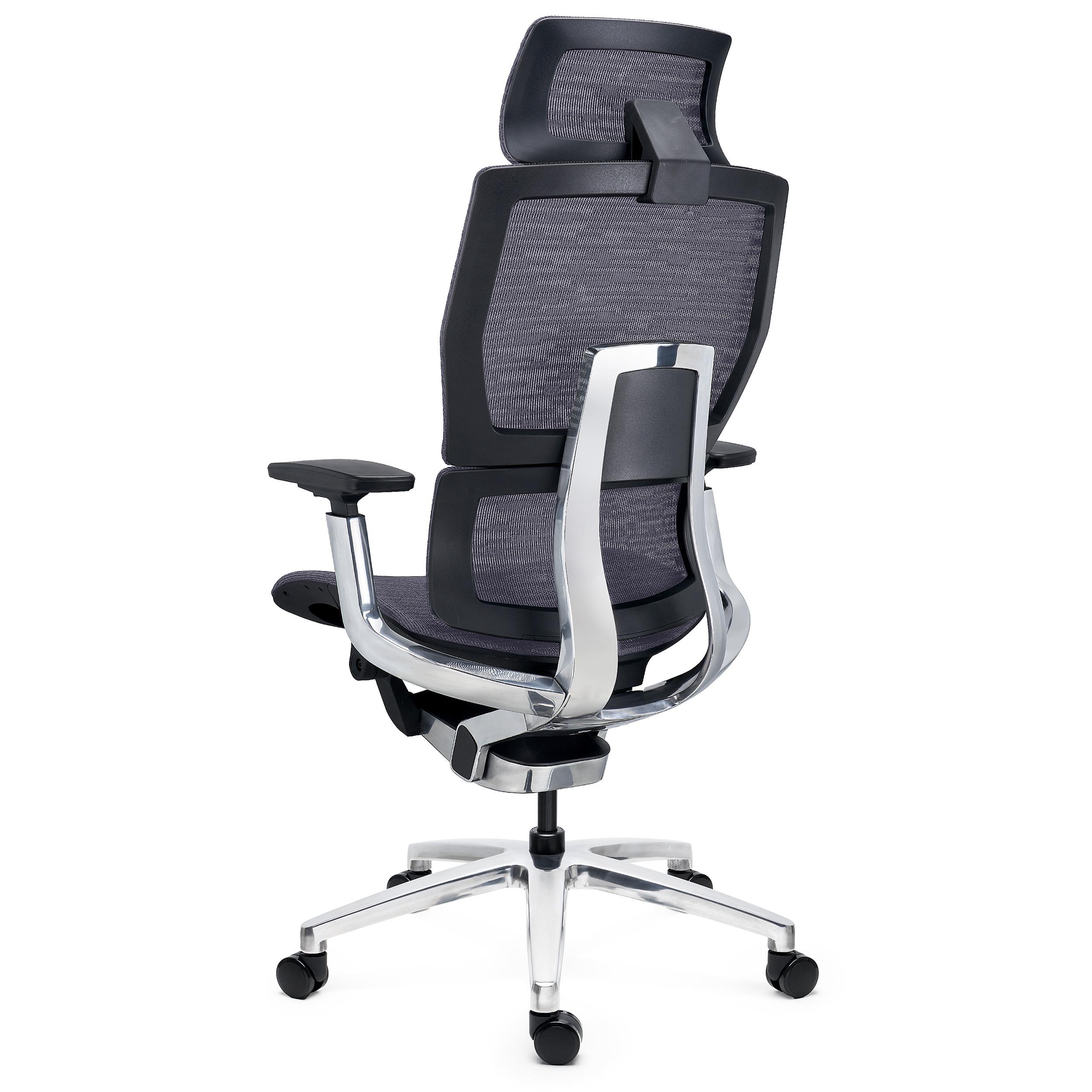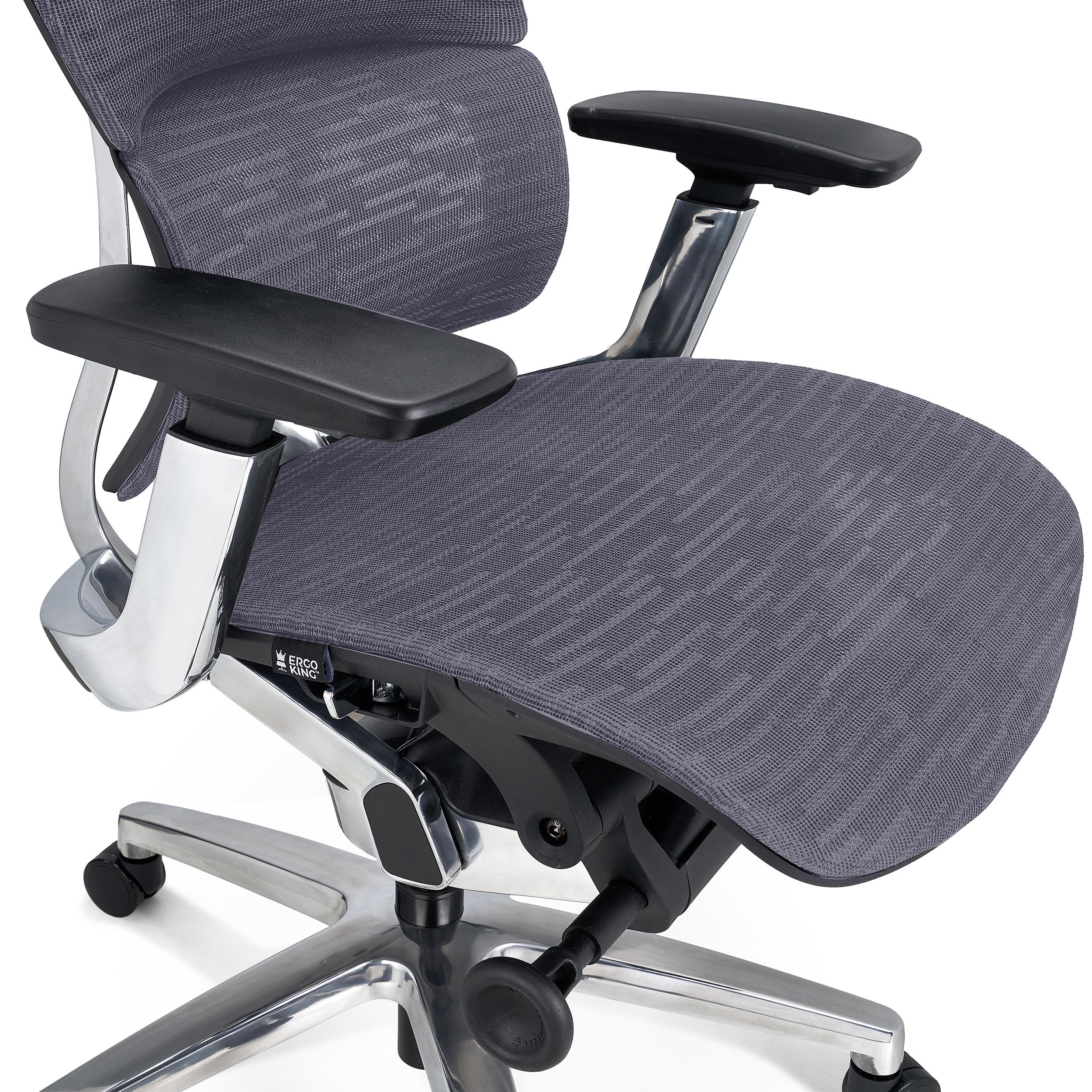 Chaise Ergonomique ERGOPLUS, Appui-tête, 100% Ajustable, Utilisation Intensive 8h, en Maille, Gris