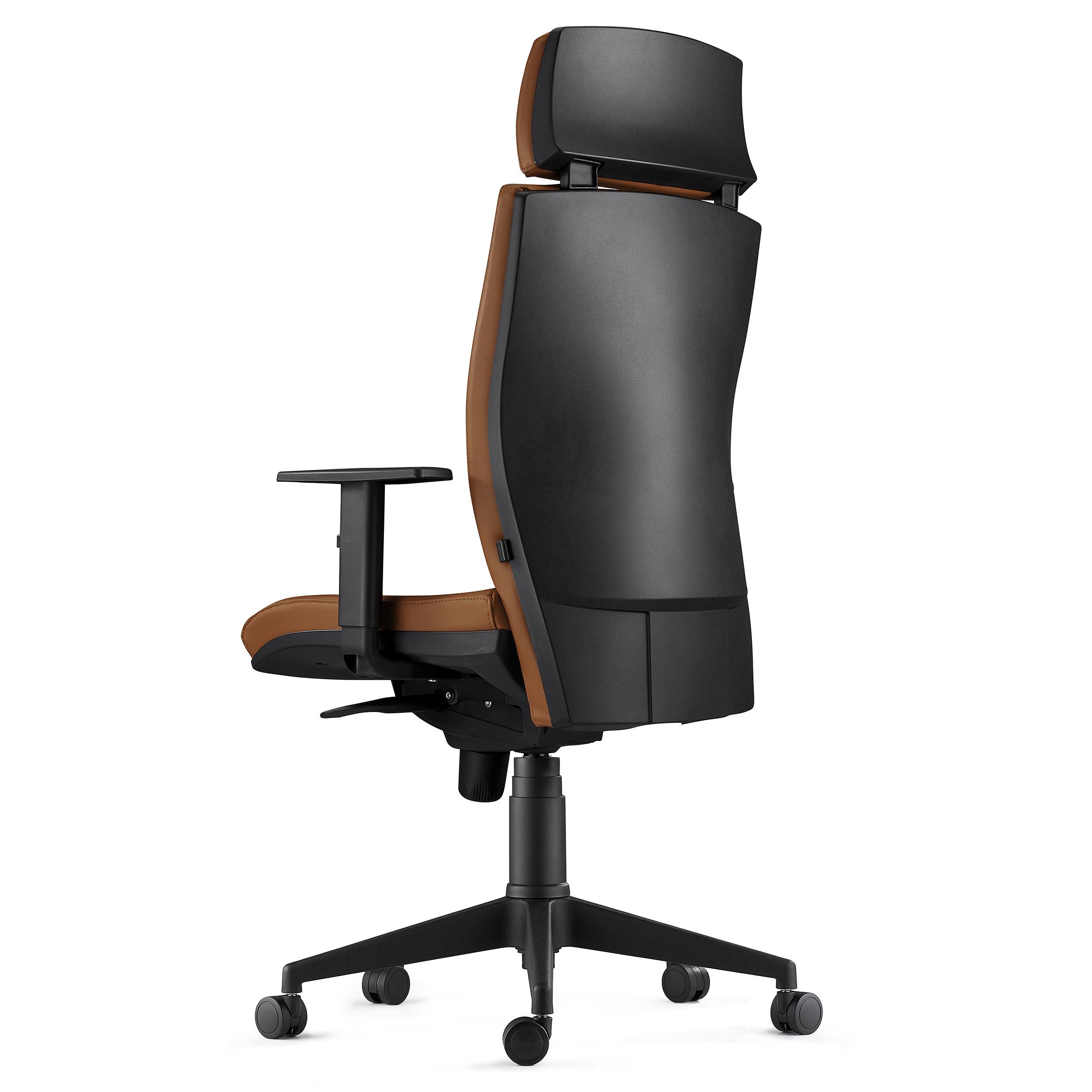 Chaise Ergonomique MARVEL, avec Appui-tête et Support Lombaire, Cuir Authentique, Marron