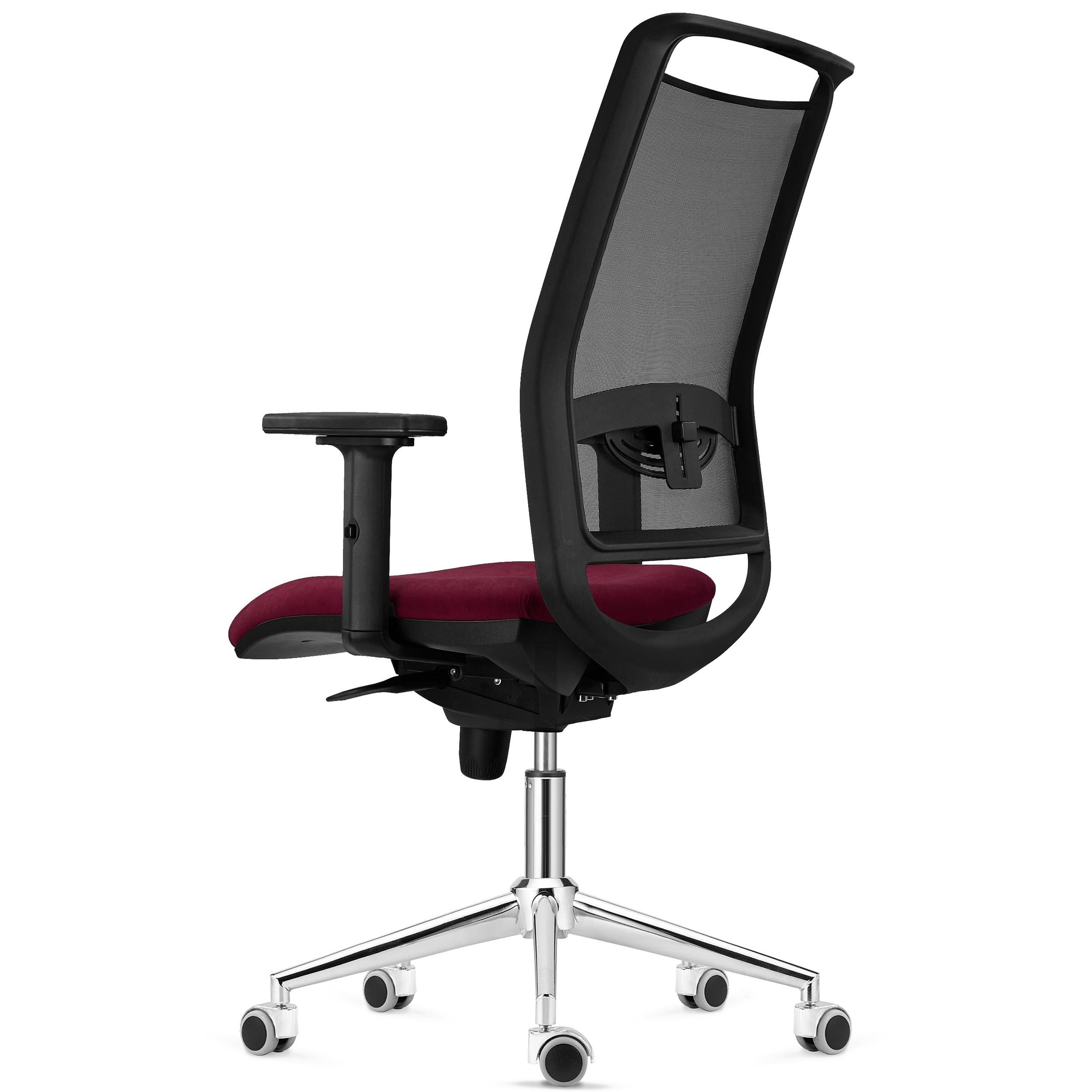 Chaise Ergonomique NEPTUNE, Support Lombaire Ajustable, Piétement Métallique, en Maille et Tissu Bordeaux