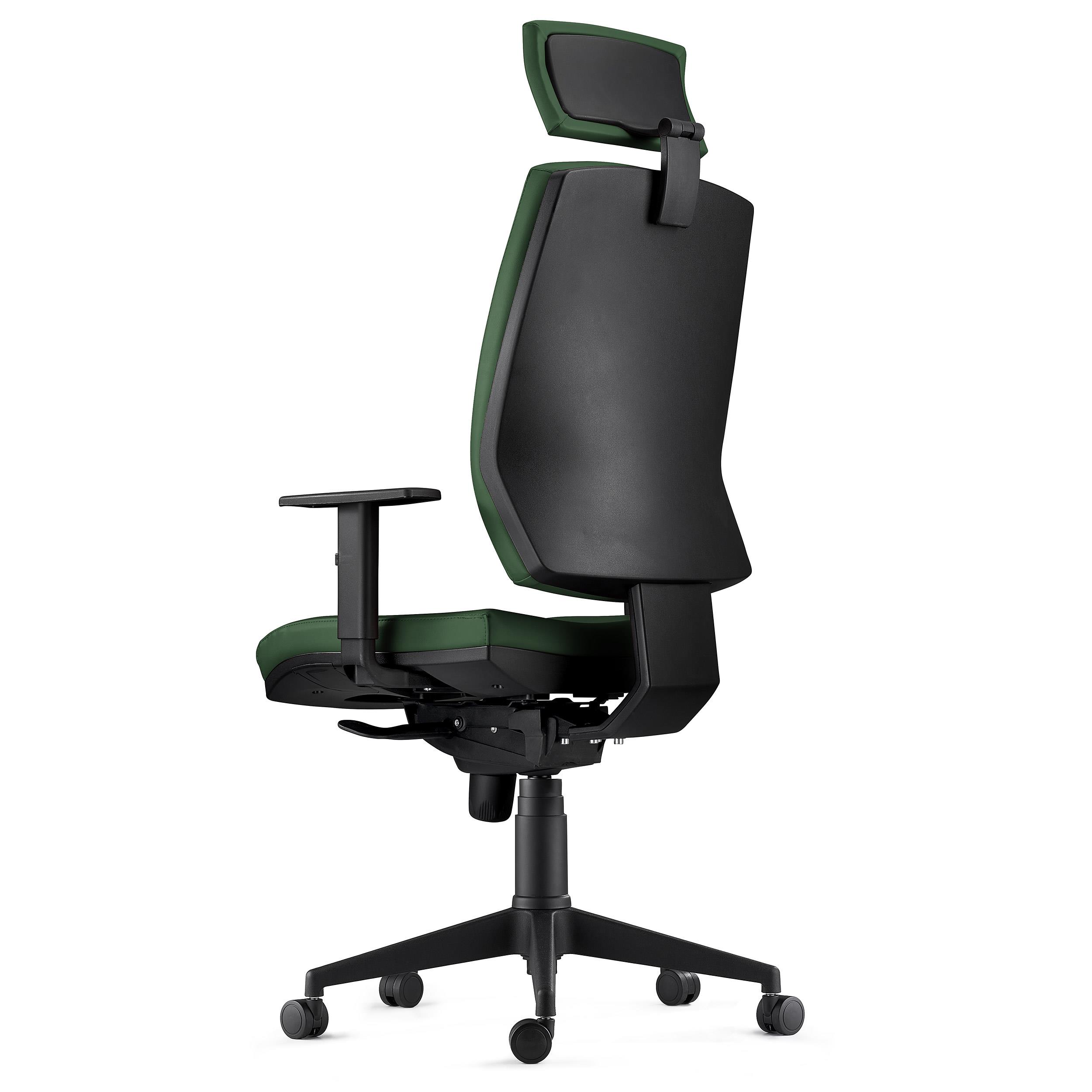 Chaise Ergonomique OLIVER, en Cuir Vert, Appui-tête, Utilisation 8 Heures, Rembourrage Epais