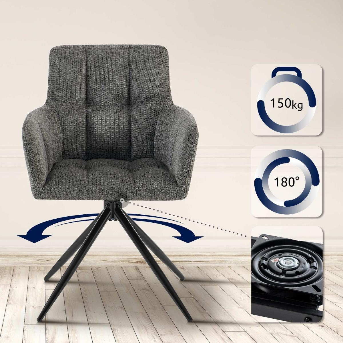 Chaise Visiteur KEMP, Structure Métallique, Pivotante à 180º, Tissu, Gris Foncé