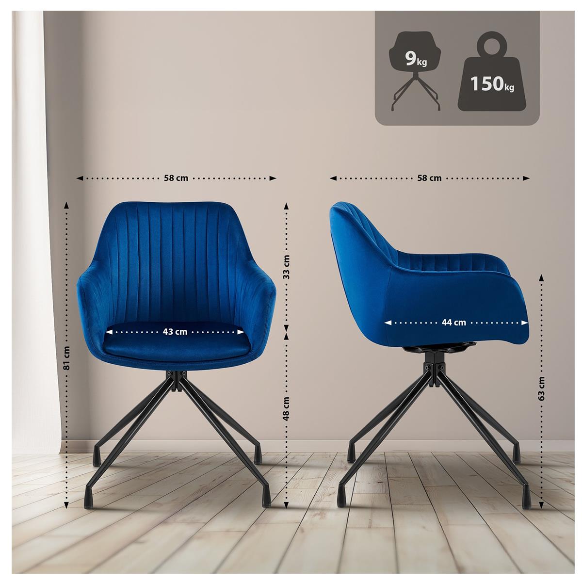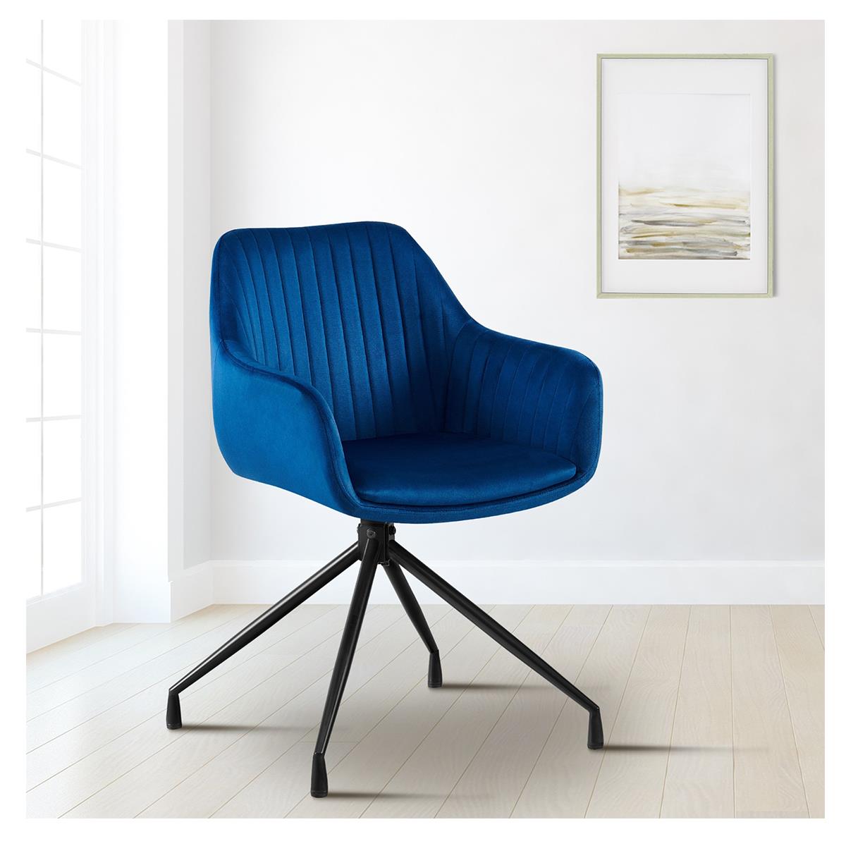 Chaise Visiteur TANNER, Structure Métallique, Pivotante à 180º, Velours, Bleu