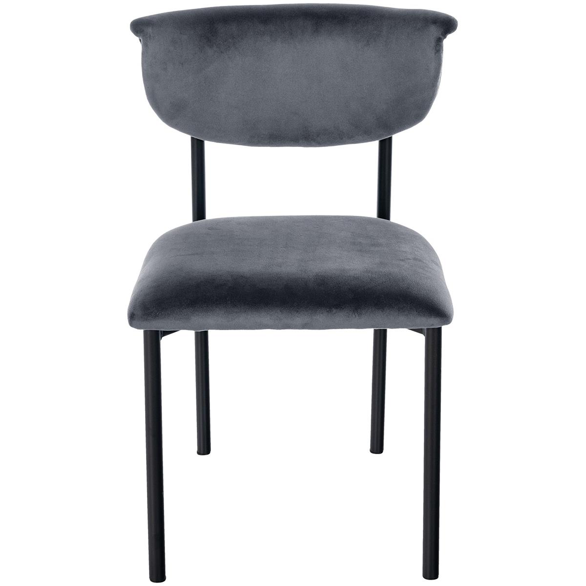 Chaise Visiteur TUCKER, Structure Métallique, en Velours, Gris Foncé