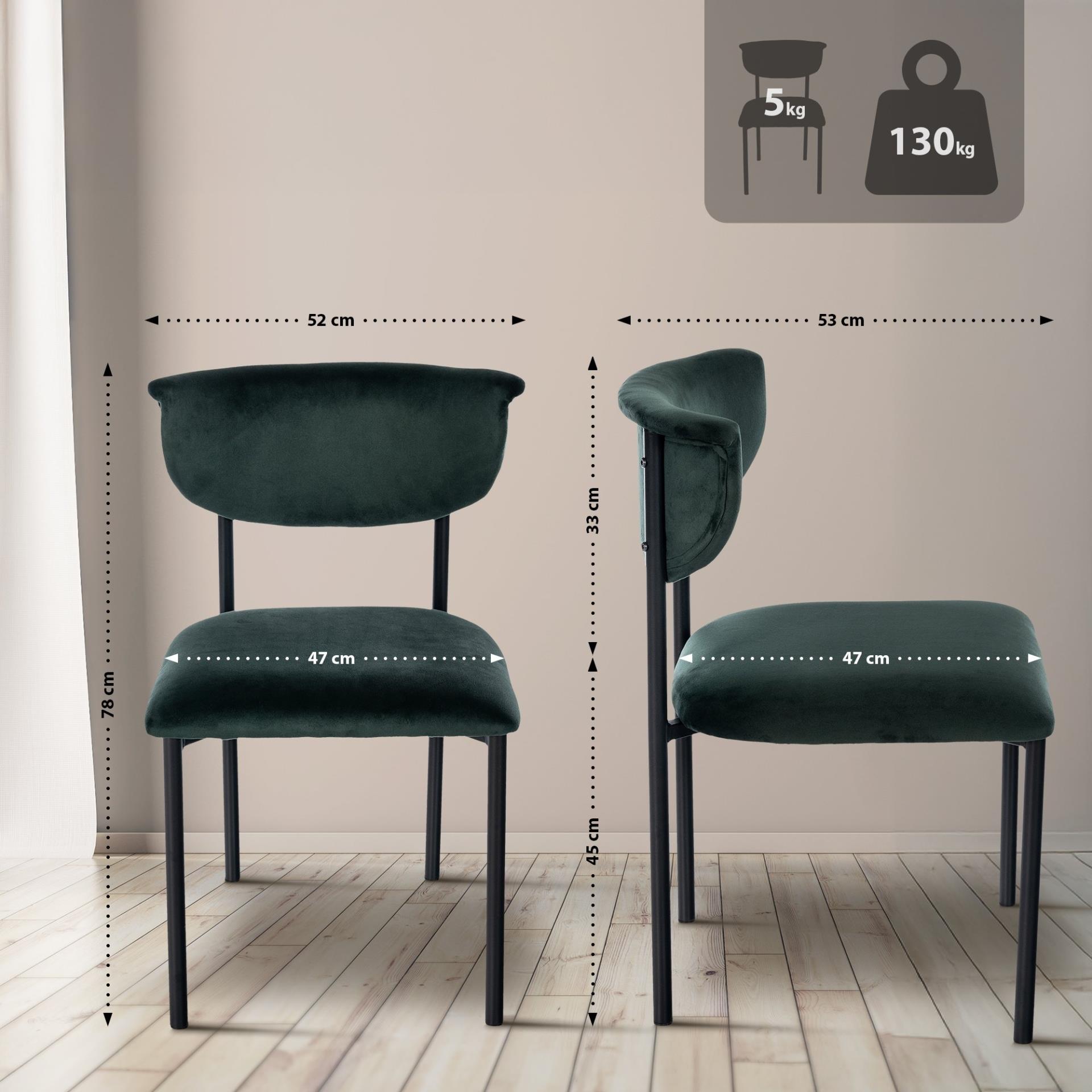 Chaise Visiteur TUCKER, Structure Métallique, en Velours, Vert