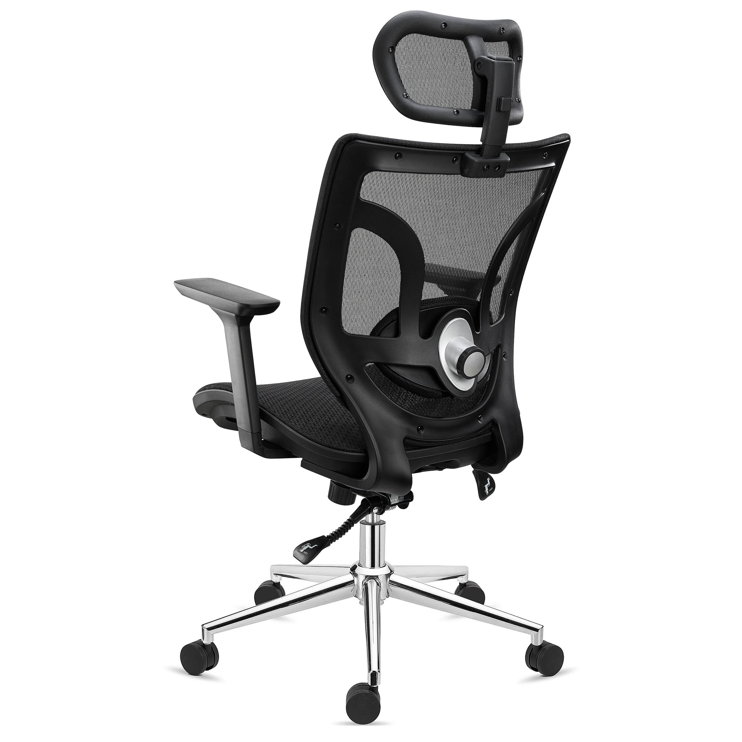 DEMO# Chaise Ergonomique LAMBO PRO, Appui-Tête, Support Lombaire, Assise en Maille, Accoudoirs 3D, Noir