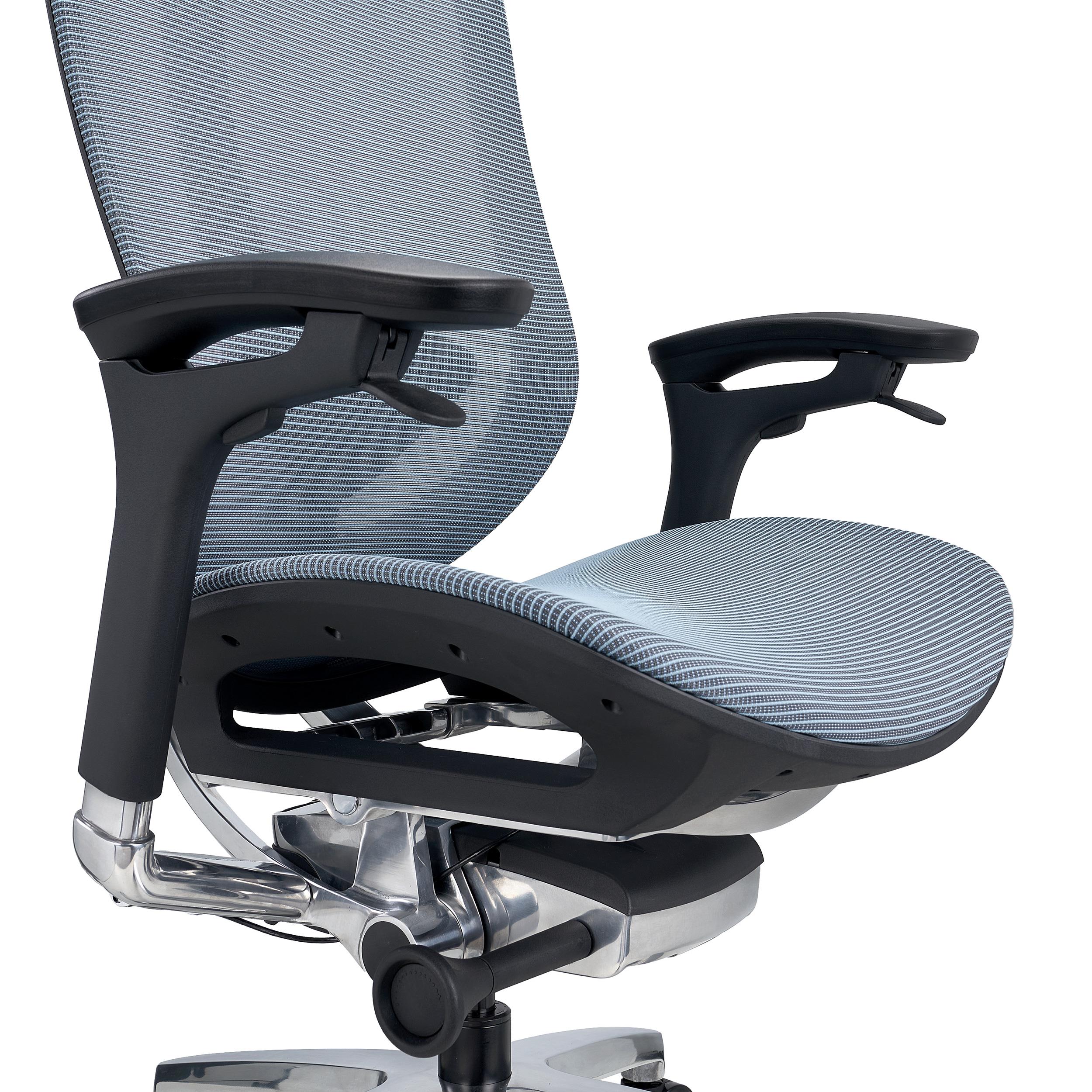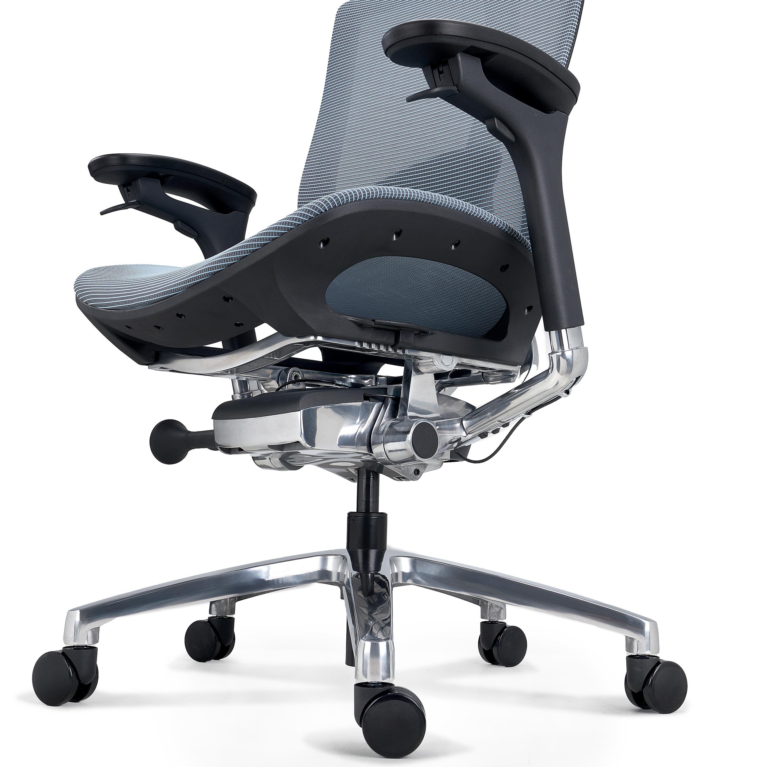 Ce modèle possède des accoudoirs réglables en 3D (hauteur, profondeur et angle) : ces derniers sont pourvus de pratiques leviers sur leur partie inférieure, permettant de contrôler à la fois la hauteur de votre assise et l'inclinaison de votre dossier, sans effort. Leur structure en finition chromée apporte une touche d'élégance à l'ensemble qui attirera tous les regards.