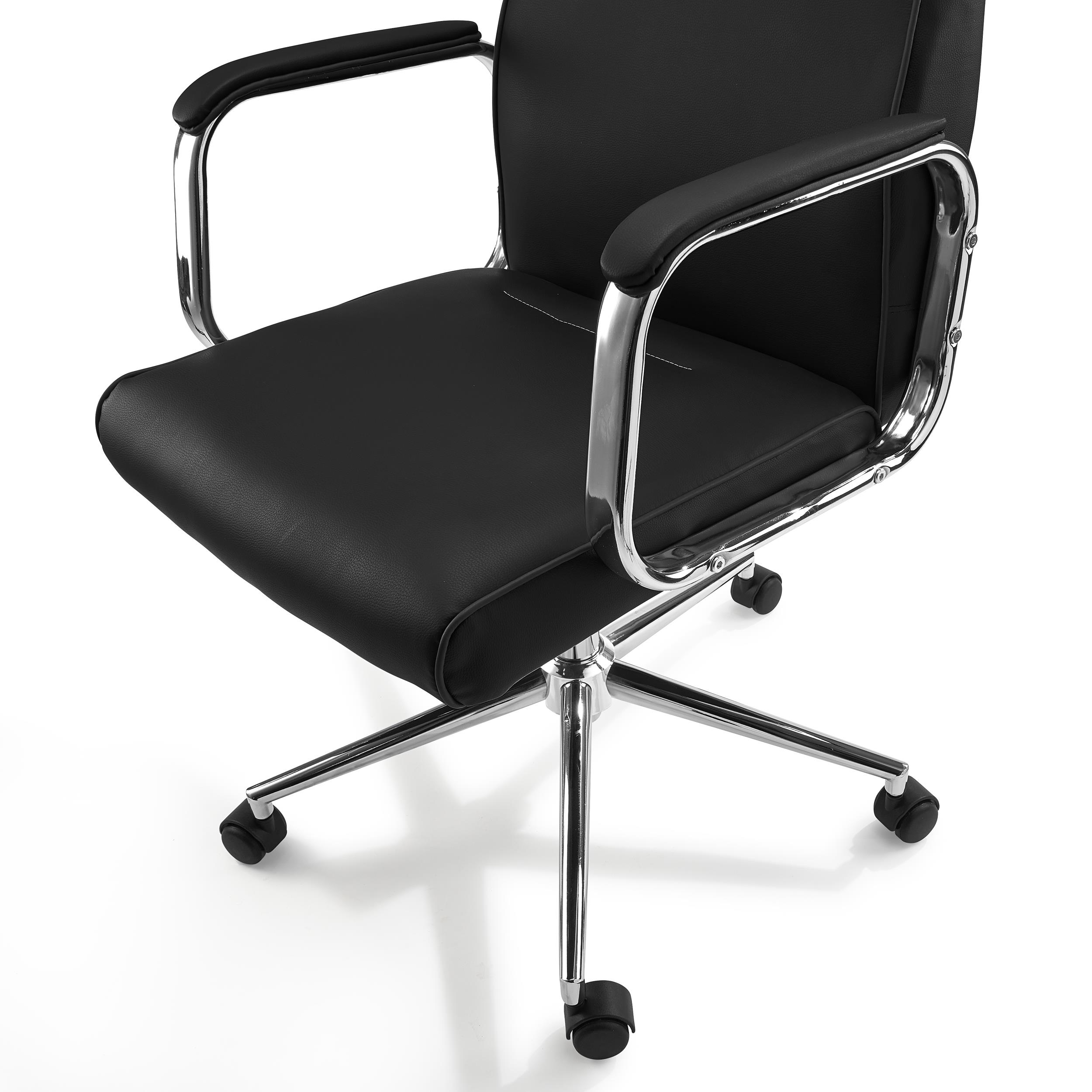 Les matériaux de premier choix et les finitions les plus soignées ont été choisis pour la fabrication de ce fauteuil. Les détails ont été étudiés pour vous offrir un fauteuil au design élégant. Le cuir synthétique d’aspect esthétique, le piétement métallique et les accoudoirs légérement chromés apportent une touche de style à l’ensemble.