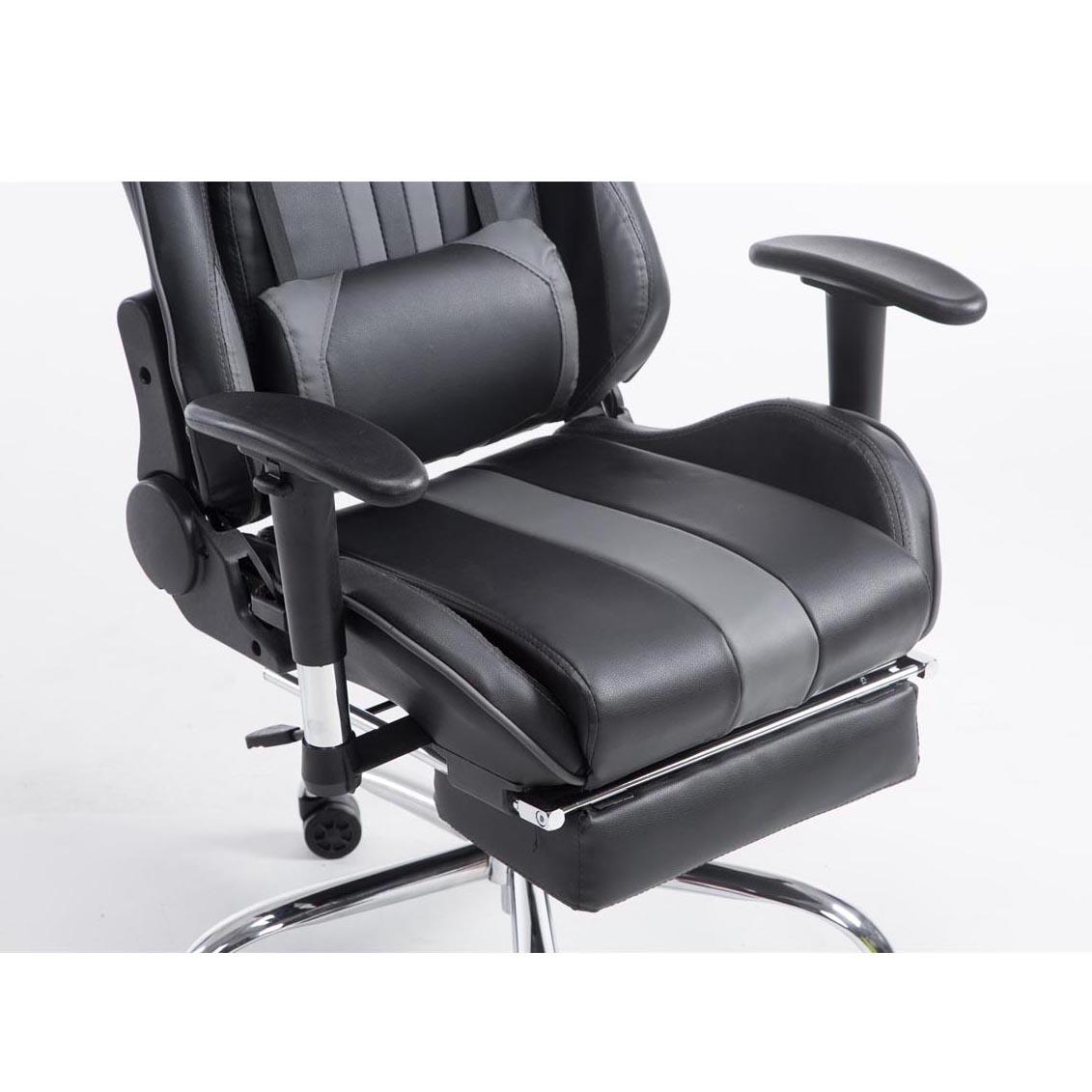 Fauteuil de bureau Gamer LOGAN avec Repose-pieds, Dossier Inclinable, Coussins Inclus, Piétement en Métal, Noir/Gris