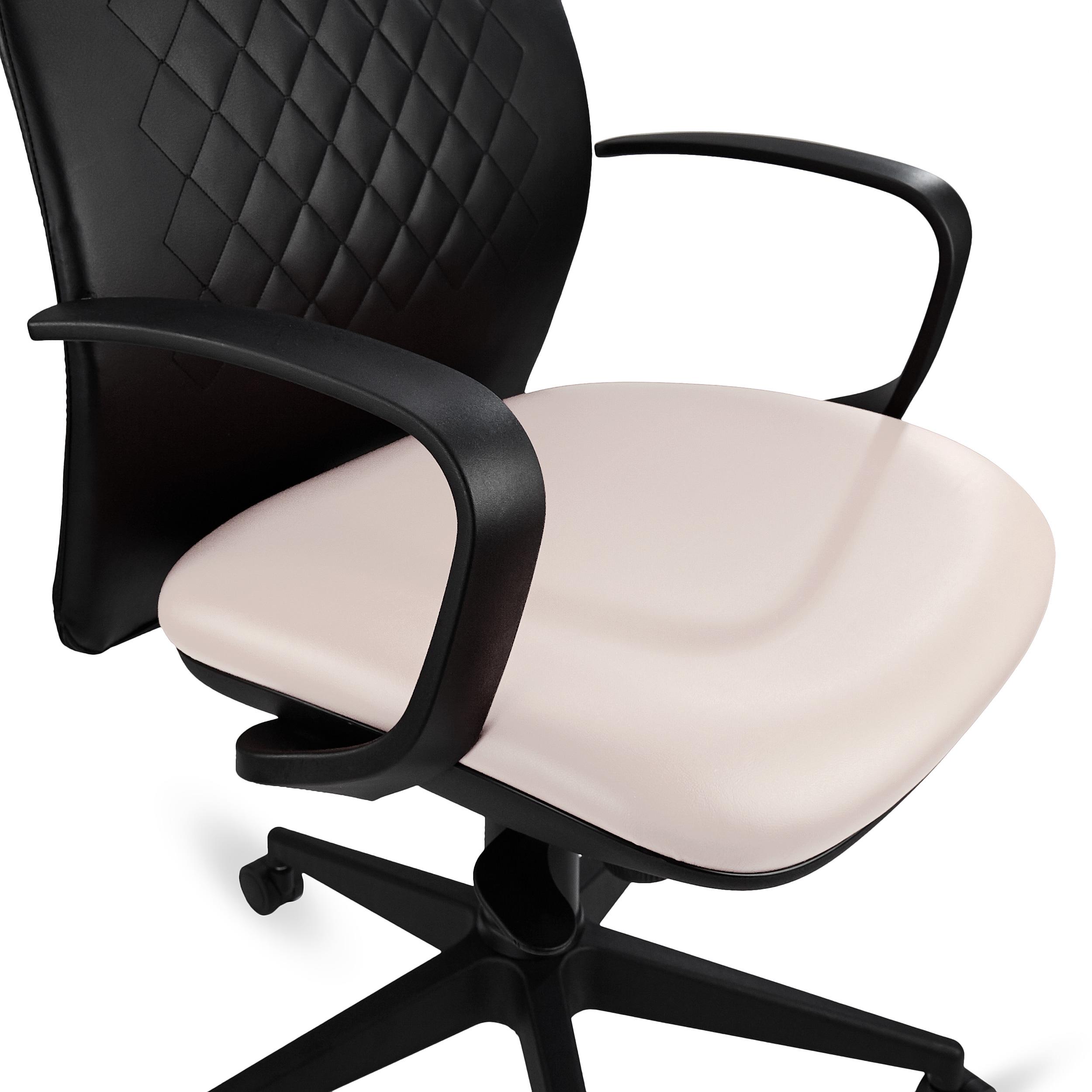 Fauteuil Ergonomique YEDA, Dossier Haut, Coutures Apparentes, en Cuir Noir et Crème