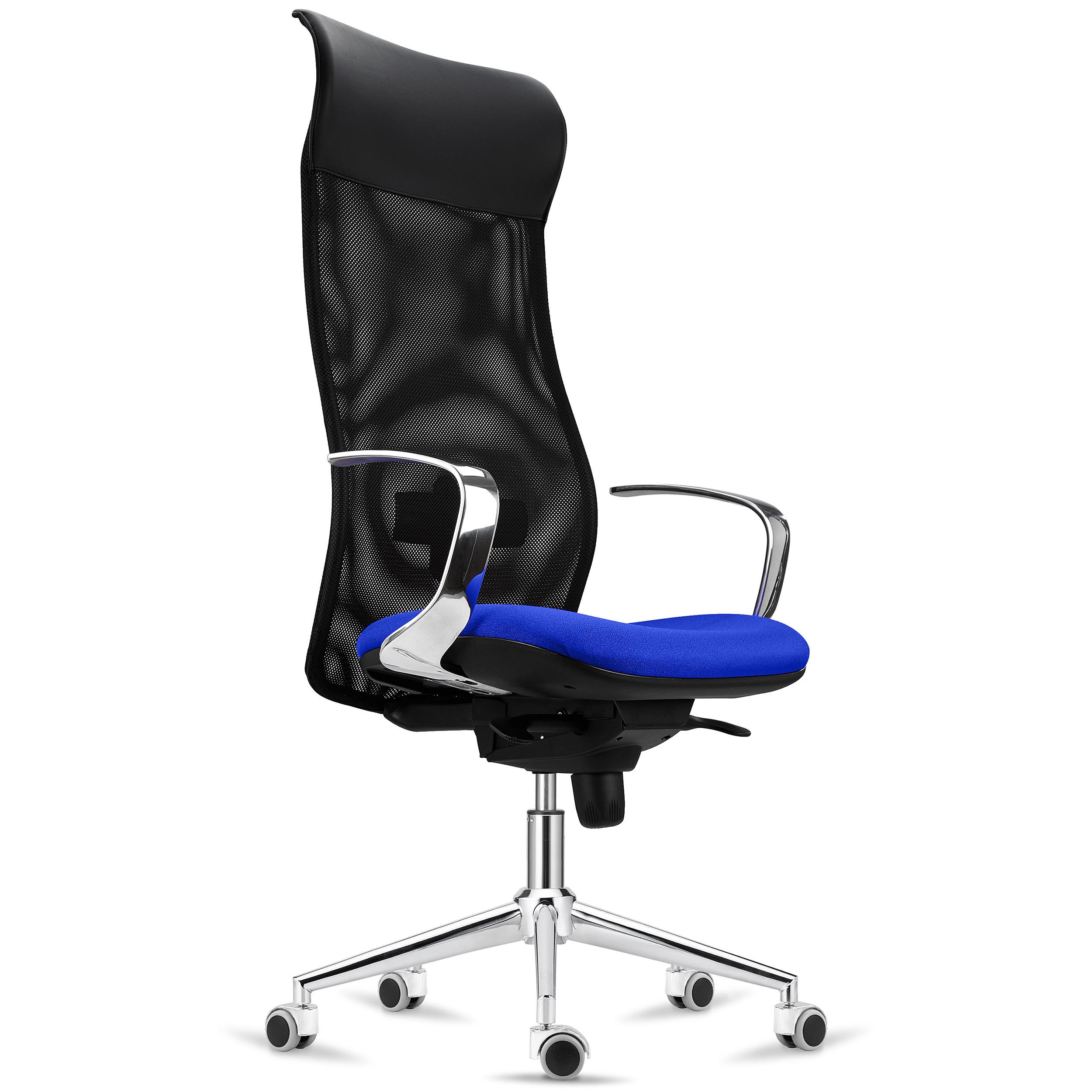 Fauteuil Ergonomique YEDA, Dossier Haut, Support Lombaire, en Maille Respirable et Tissu, Bleu