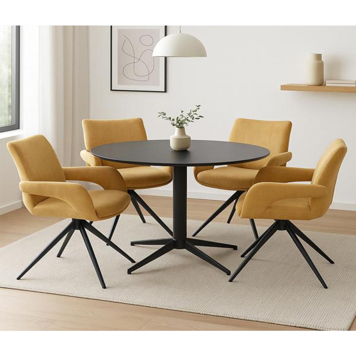 Fauteuil Visiteur LELIA, Pivotant, Rembourrage Épais, Design Moderne, en Tissu, couleur Jaune Moutarde