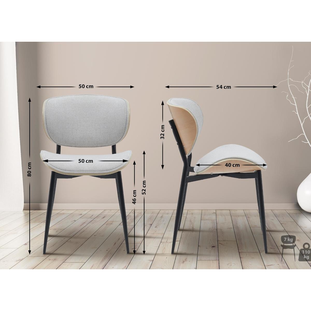 Lot de 2 Chaises Visiteur BRONSON TISSU, Design Exclusif, Structure en Bois Naturel, Crème
