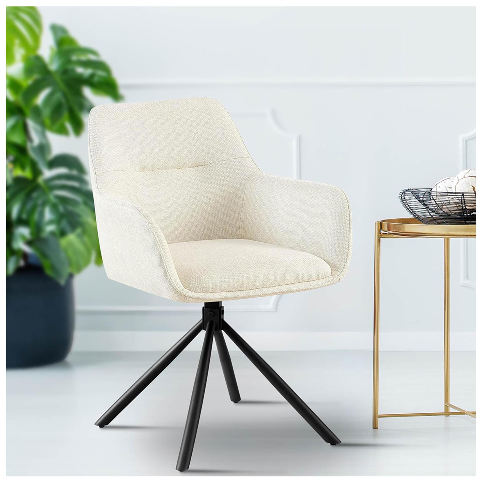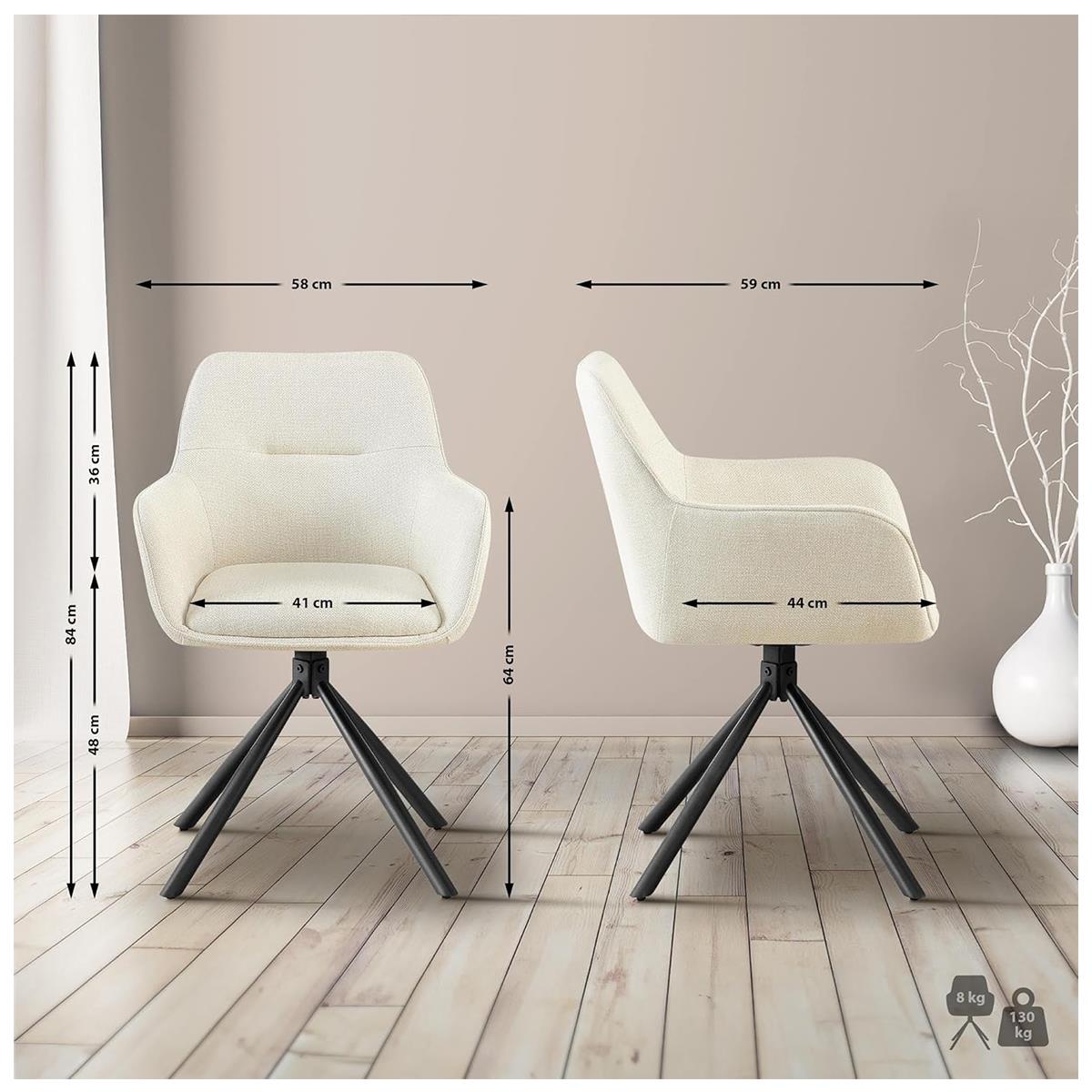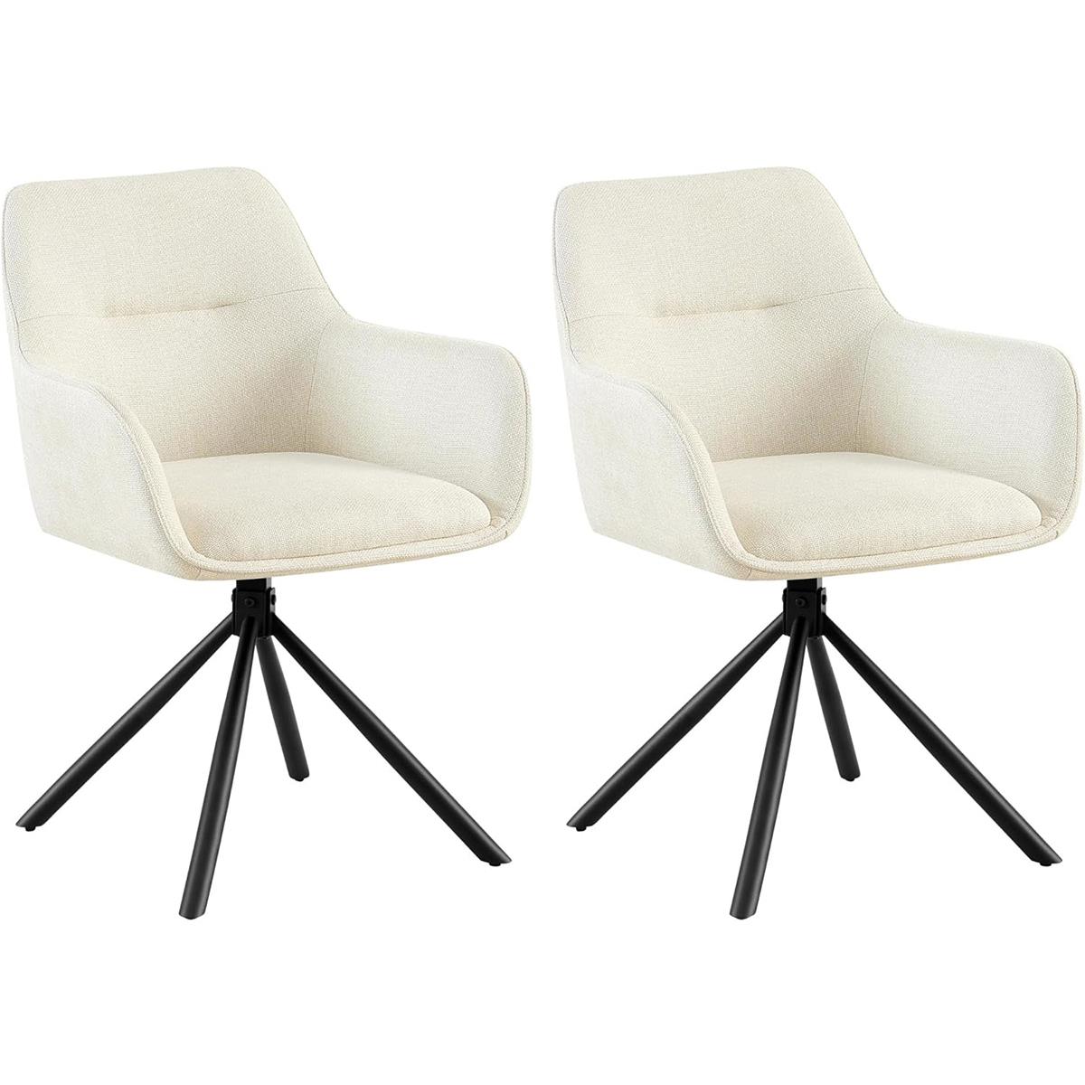Lot de 2 Chaises Visiteur COREY, Design Moderne, Pivotantes à 180°, Tissu Crème
