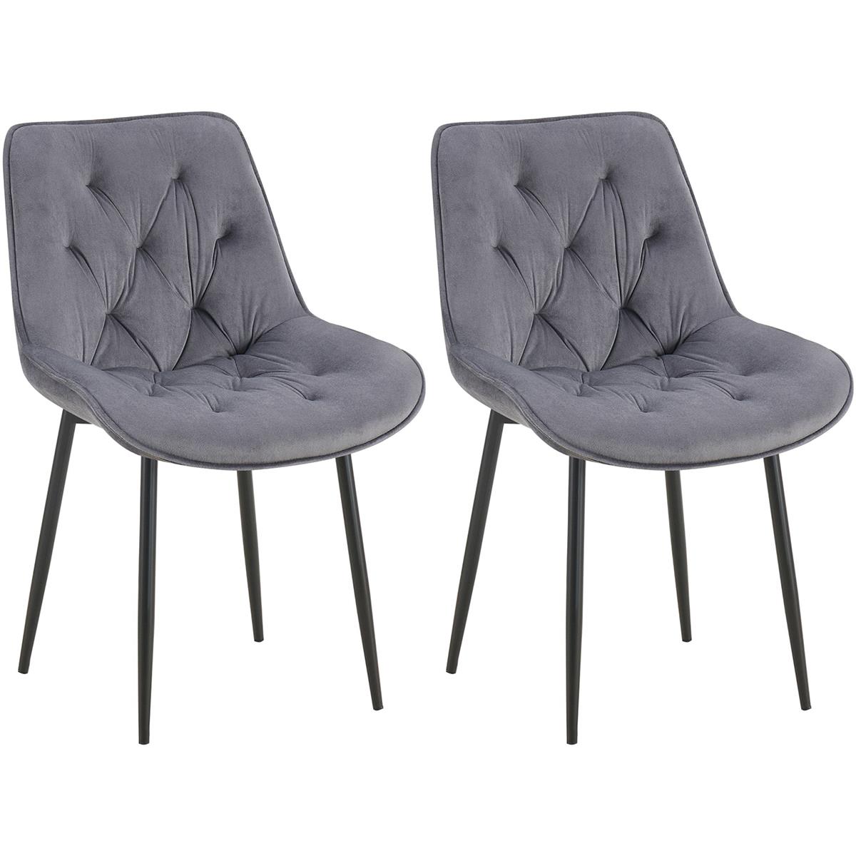 Lot de 2 Chaises visiteur GRACE, Design Confortable et Elégant, Piétement métallique, en Velours Gris Foncé