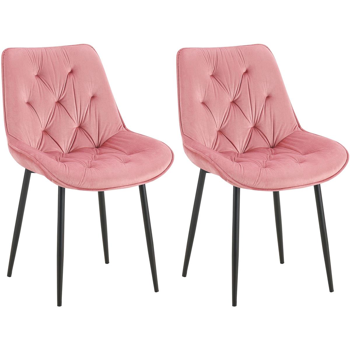 Lot de 2 Chaises visiteur GRACE, Design Confortable et Elégant, Piétement métallique, en Velours Rose