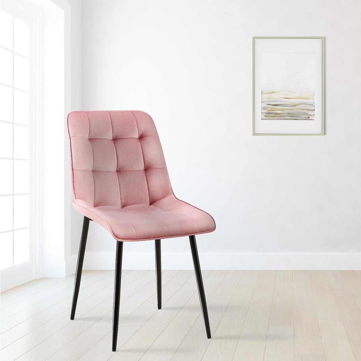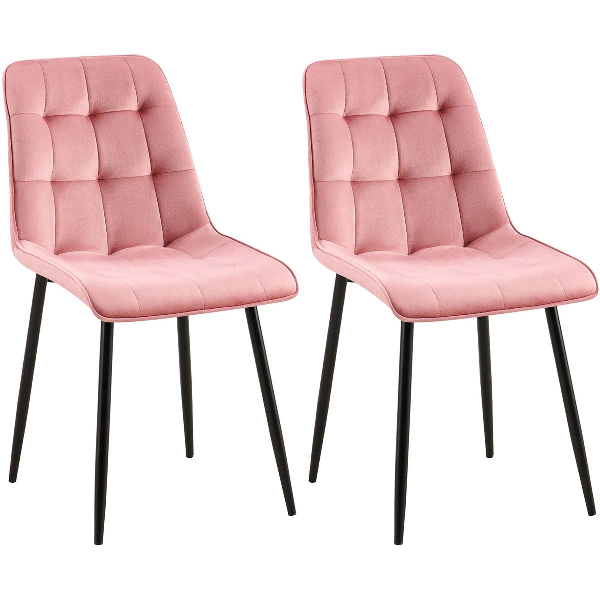 Lot de 2 Chaises Visiteur HALIMA, Rembourrage Épais, Structure Métallique, en Velours, Rose Clair
