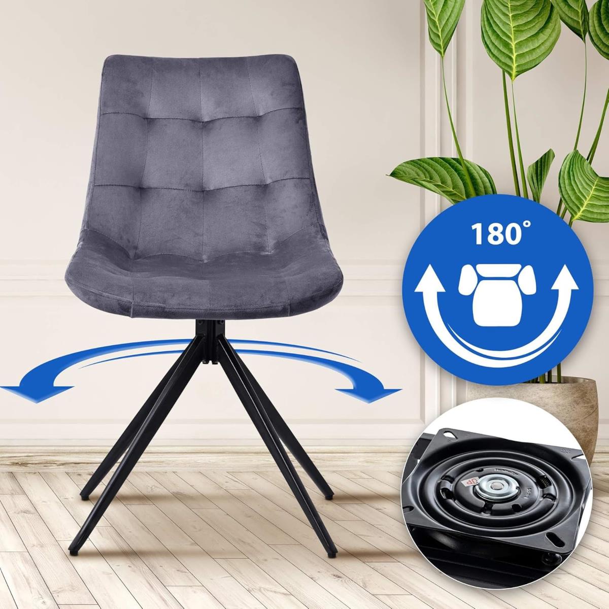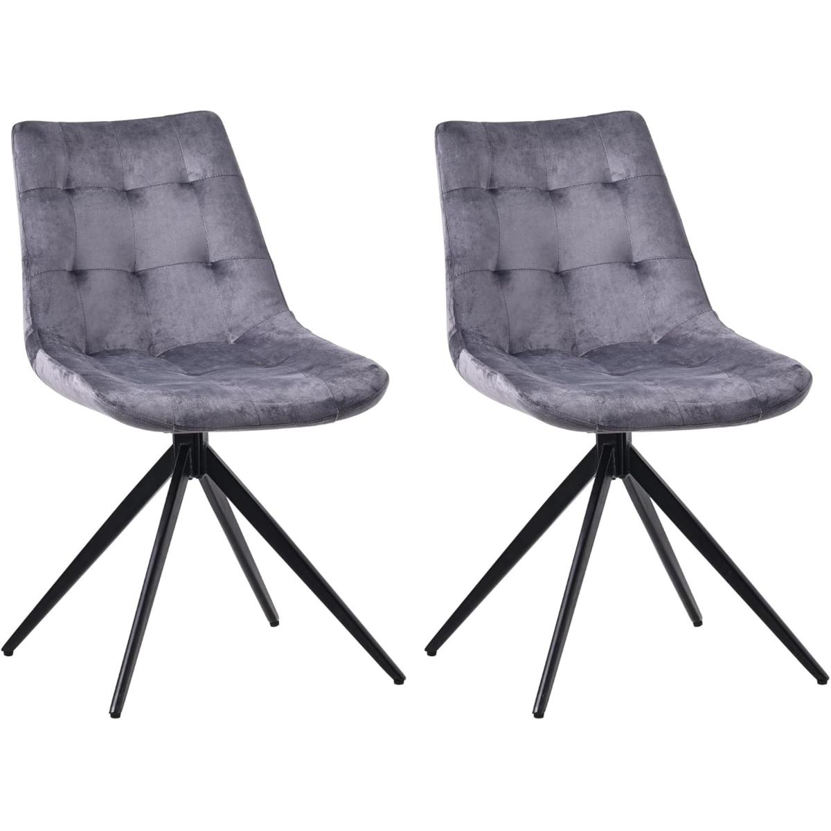 Lot de 2 Chaises Visiteur KEATON VELOURS, Structure Métallique, Pivotantes, Gris