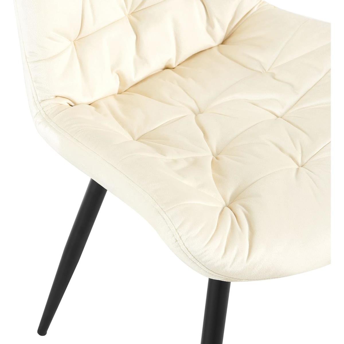 Lot de 2 Chaises visiteur LENNY, Piétement métallique Noir, en Velours, Crème