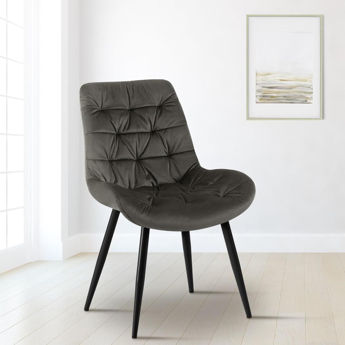 Lot de 2 Chaises visiteur LENNY, Piétement métallique Noir, en Velours, Gris Anthracite