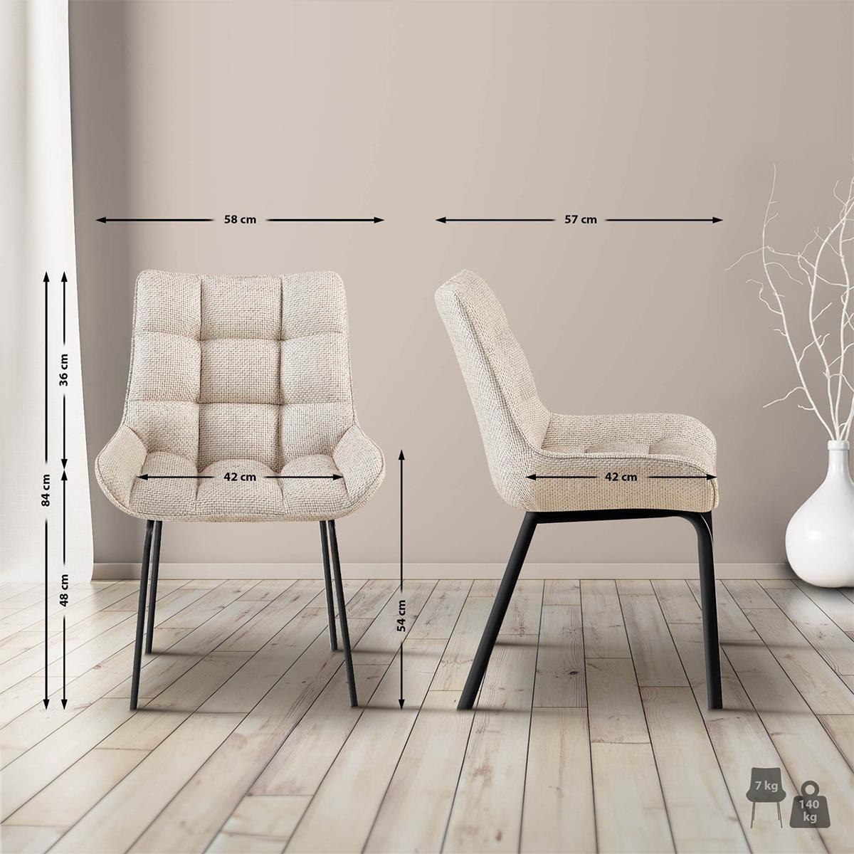 Lot de 2 Chaises visiteur MAMBO TISSU, Rembourrage Épais, Piétement métallique, en tissu Crème