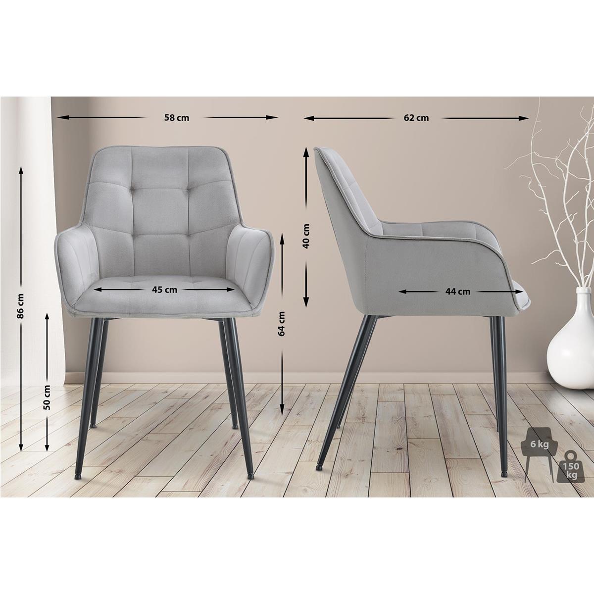 Lot de 2 Chaises Visiteur RUFUS, Design Moderne et Élégant, en Velours, Gris Clair