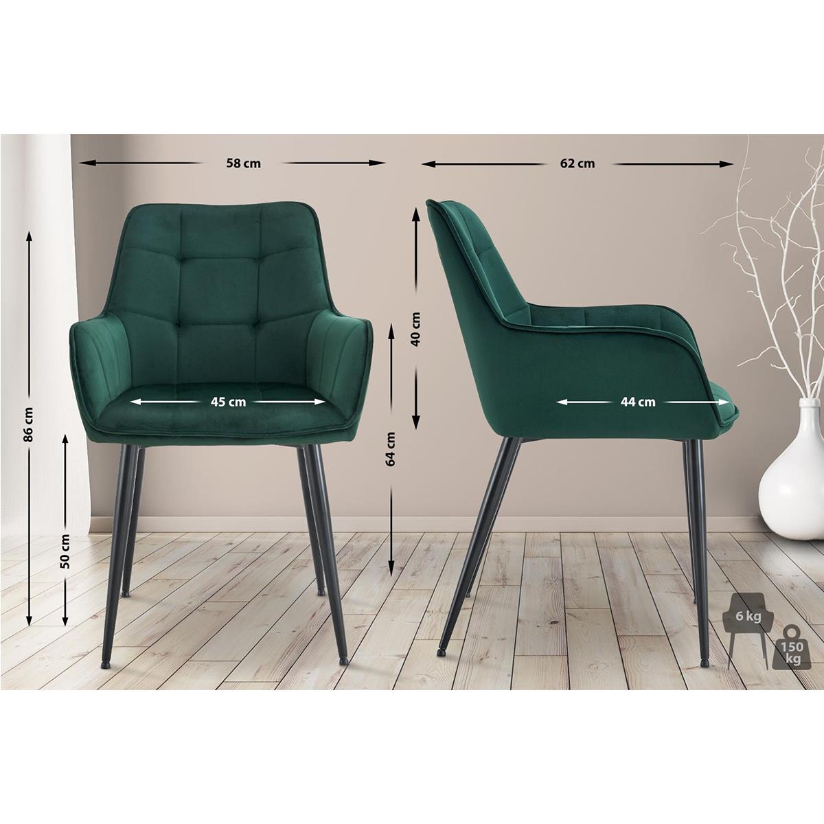 Lot de 2 Chaises Visiteur RUFUS, Design Moderne et Élégant, en Velours, Vert
