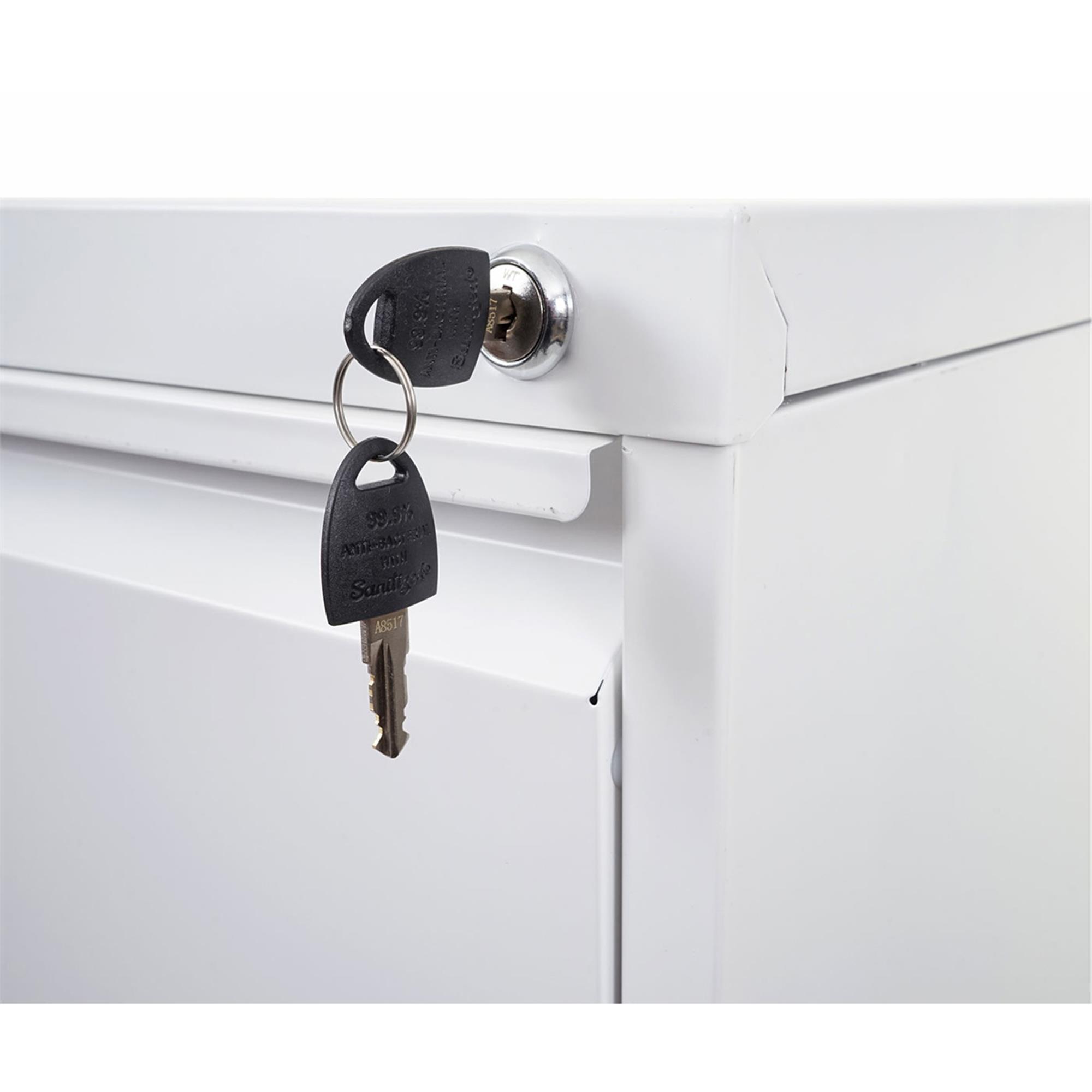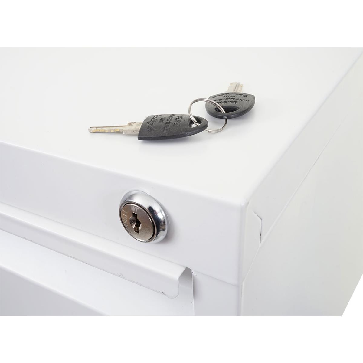 Pour une sécurité renforcée, le meuble est livré avec deux clés, vous permettant de verrouiller l’ensemble des tiroirs et de protéger vos documents confidentiels et objets de valeur. Les tiroirs sont conçus pour accueillir des dossiers suspendus aux formats A4. À noter que le format Legal est légèrement plus grand ; les rails nécessaires pour les dossiers suspendus A4 sont inclus.