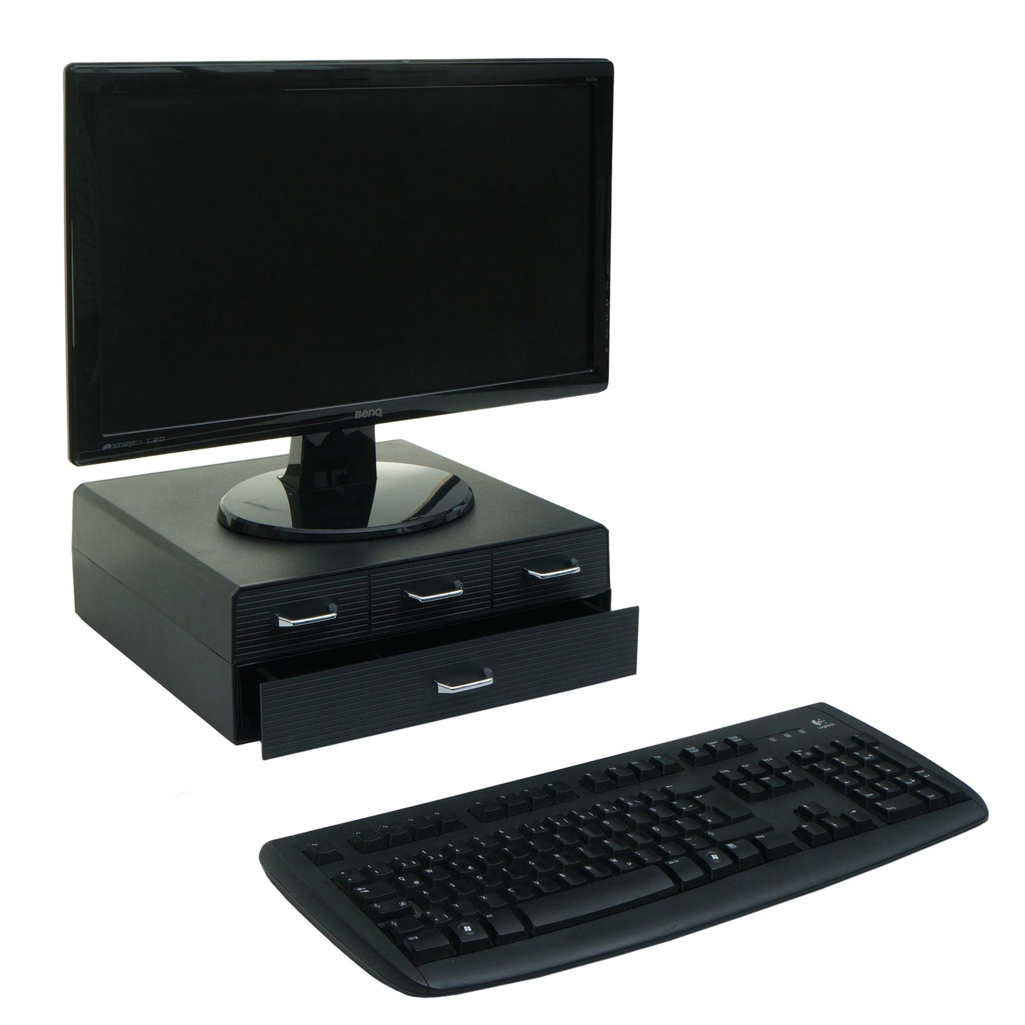 Réhausseur pour Écran ASH, avec Tiroirs, 34x31x13cm, Noir